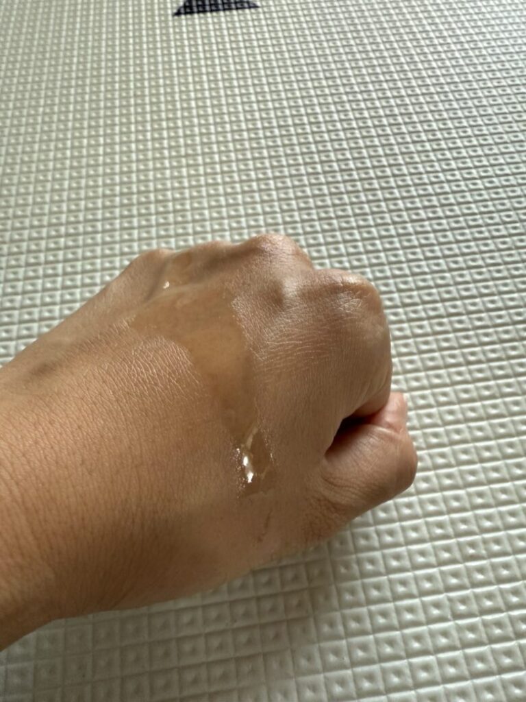 手に出すと、とろみのないサラサラとしたオイル。肌にのせるとスッと伸びて、あっという間に馴染みます。